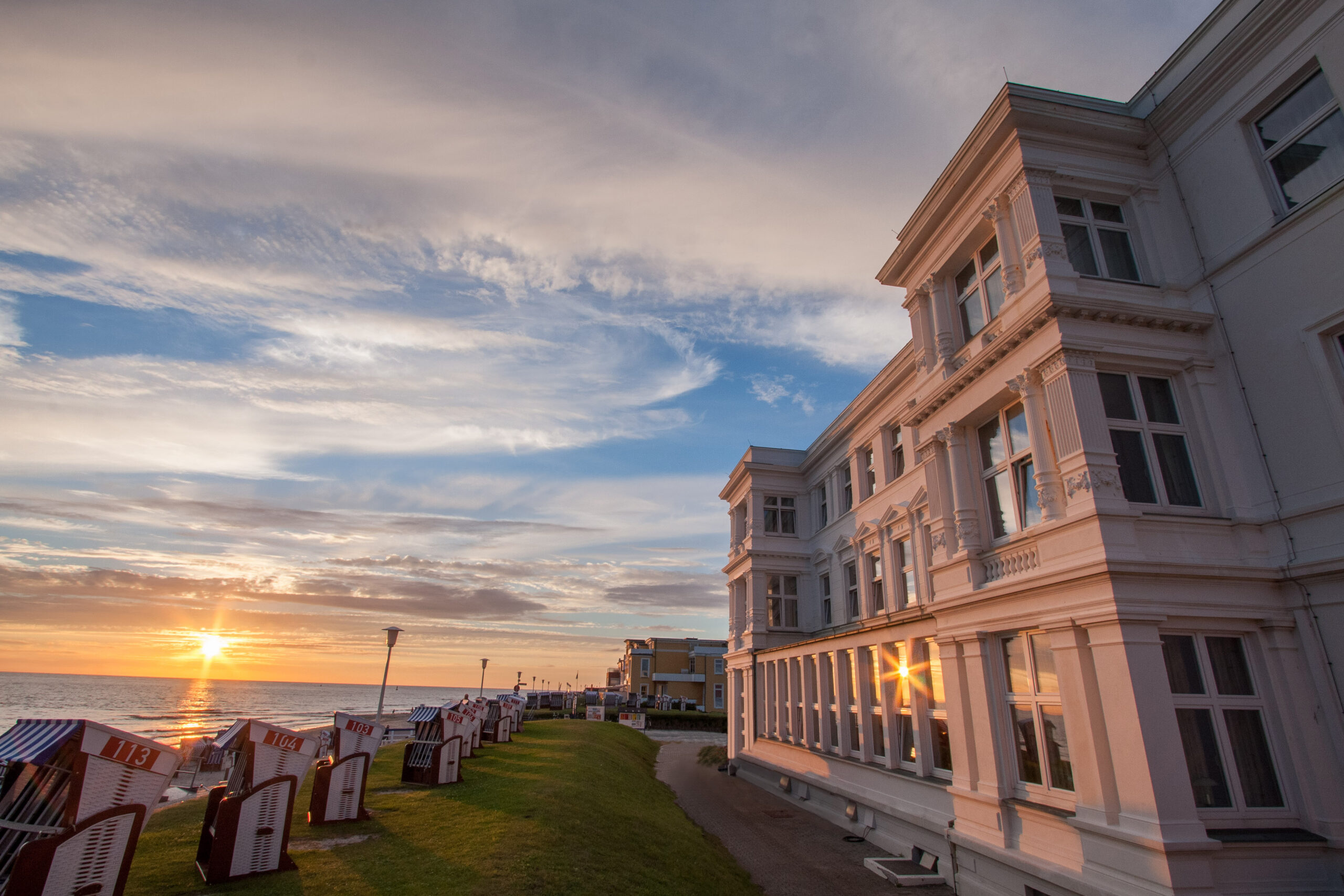 Unser Haus am Weststrand liegt direkt an der Strandpromenade. Zum Ortskern, der zum Bummeln und Verweilen einlädt, mit seinem Wellen- und Thalassobad, dem Conversationshaus mit Kurpark, sind es nur ein paar Schritte.